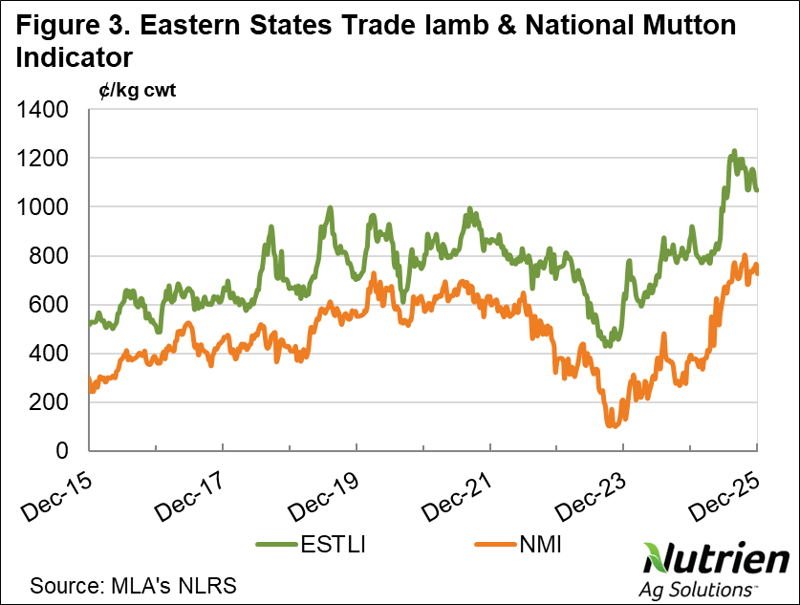 It’s easy to forget how extreme lamb and sheep prices are at the moment. Figure 3 shows that despite easing from peaks, both lamb and mutton sit at levels stronger than we’ve ever seen before. To see prices ease, supply needs to improve markedly, or demand weaken. Neither seems all that likely in the short and medium term.