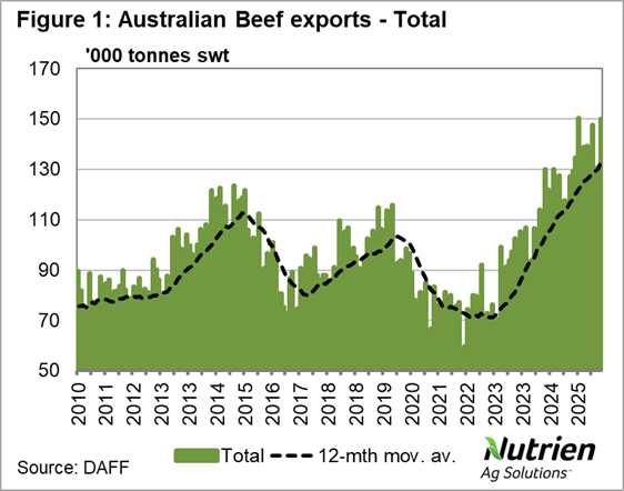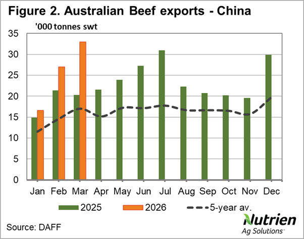 Australian beef exports have steamed through March coming in just shy of 150,000, making it the second-highest monthly export volume on record.