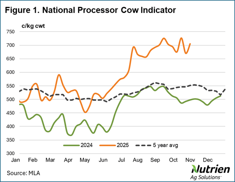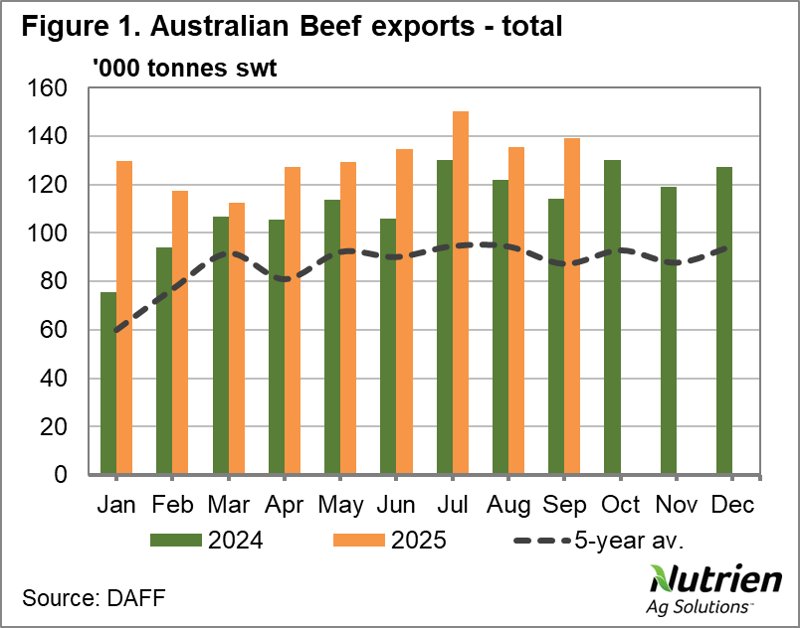 If we look at this through the cow category, we know strong export demand is continuing. The US is set to hit a new record for total beef imports at 1.7 million tonnes, nearly 12% more than in 2024. Australia’s beef exports to the US are set to be about 20% higher year-on-year, according to the Steiner Consulting Group. This demand has also brought about a record high price for beef being imported into the US and corresponds with Australia’s strong domestic supply and positive seasonal conditions in the north.