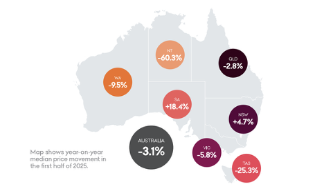 South Australia and NSW were the only states to record growth in the first half of 2025.