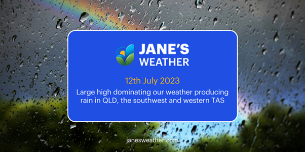 Large high dominating our weather producing rain in QLD, the southwest and western TAS
